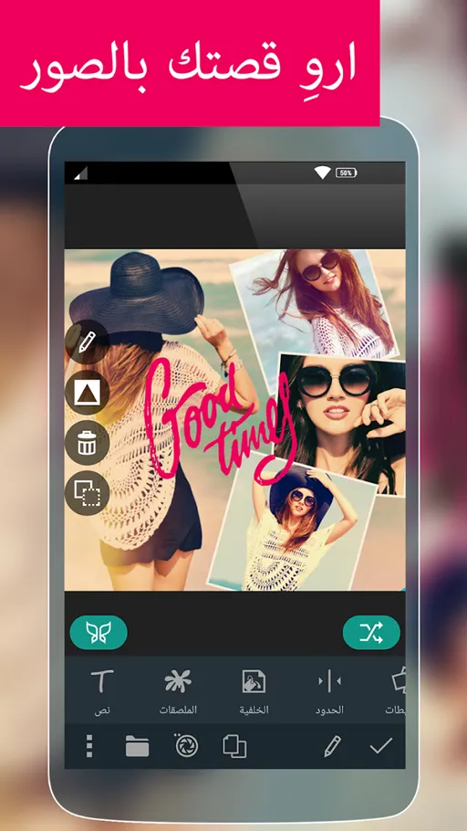 - تجميع الصور : هٌناك مجموعة من التطبيقات التي تم تطويرها خصيصاً لتنفيذ عملية الـ Collage أو التجميع وهي عملية تعمل على وضع أكثر من صورة بشكل معين ليكونوا صورة واحدة, وتطبيق تحرير الصور “Photo Studio Pro مهكر” يوفر هذه الخدمة مع عدد جيد بالنسبة القوالب أو الأشكال.