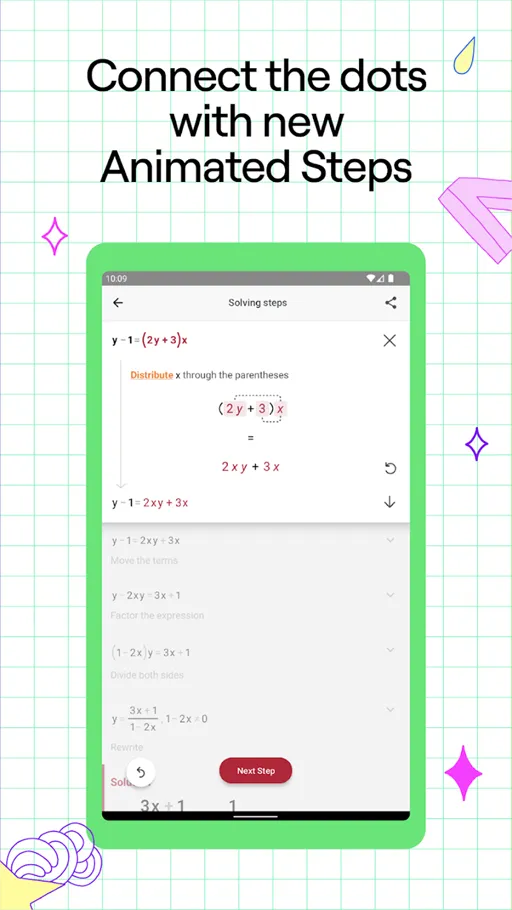 الجدير بالذكر أنه لا يقوم بإظهار لك الحل فقط بل يتم عرض لك الخطوات التي تم بها حل المعادلة, بالإضافة إلى أن تلك الخطوات عبارة عنة شرح لك تتمكن من حل المعادلة فيما بعد بمفردك دون الحاجة للاستعانة بأي وسيلة مساعدة خارجية أو الإستعانة بـ تحميل برنامج Photomath Plus Apk Mod مهكر مرة أخرى.
