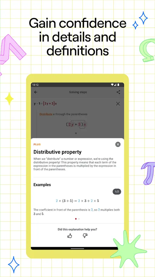 - عرض الشرح : من أبرز مميزات التطبيق هى ميزة الشرح حيث يعمل تحميل Photomath مهكر اخر اصدار على عرض والحل لك بصورة أكثر تفصيلا, حيث تلاحظ عرض جميع خطوات الحلل التي بواسطتها تتمكن من معرفة الطريقة التي تم بها حل المعادلة.