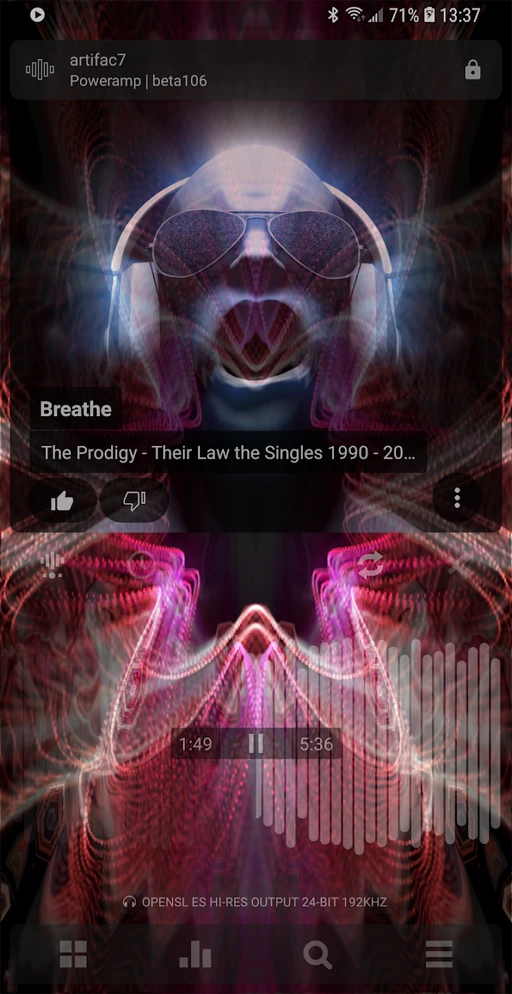 - المرئيات : كما يوفر “تحميل تطبيق Poweramp مهكر” من ميديا فاير أيضا ميزة المرئيات وبالتالي يمكنك إظهار شريط الموسيقى الذي بواسطته تستطيع التحكم في الموسيقى التي تسمعها.