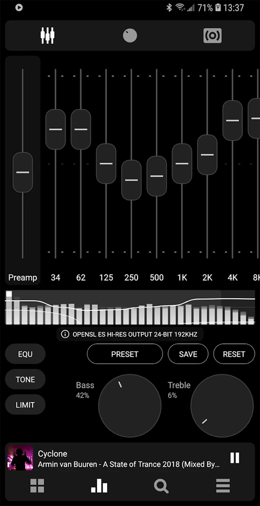 - ضبط الصوت : يتميز البرنامج بأنه يُتيح لك إمكانية ضبط الصوت وبالتالي يمكنك التحكم في درجة نقاء الصوت الخاص بالموسيقى التي تستمع لها, حيث تتوفر بالصفحة قائمة تضم بها جميع أدوات الضبط التي يمكن أن تحتاج لها في عملية الضبط الخاصة بالصوت.