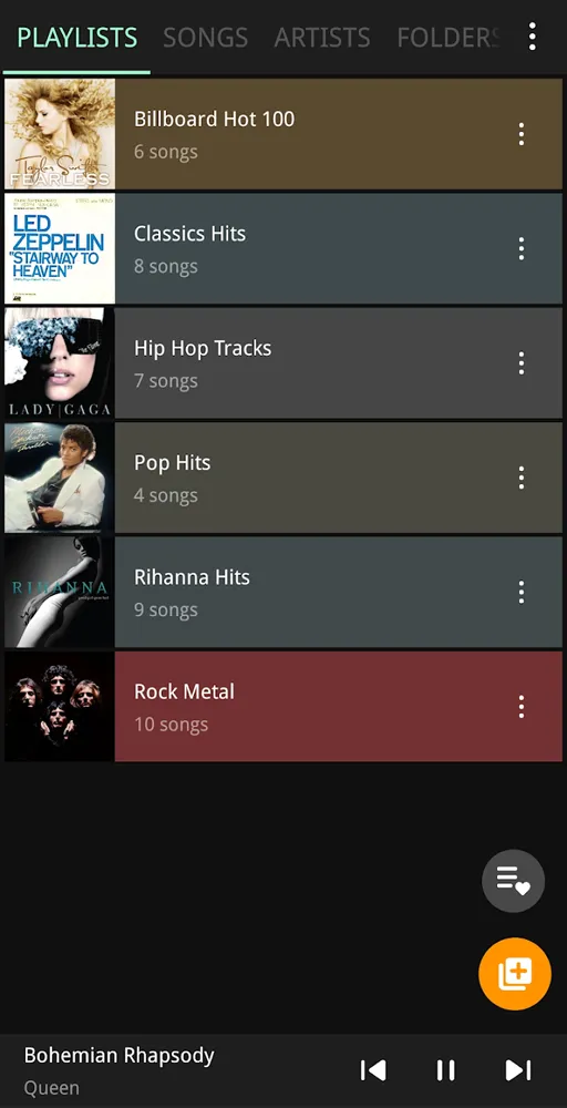 قوائم التشغيل بعد تحميل مشغل PowerAudio Pro Music Player مهكر
