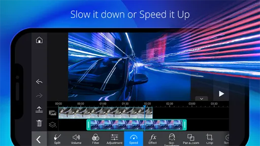 - التحكم في السرعة : من الأدوات التي تتوفر في تطبيق PowerDirector مهكر اخر اصدار هى أداة السرعة التي من خلالها يمكنك التحكم في سرعة الفيديو الخاص بك حيث تستطيع تسريع وتبطيء الفيديو كما تريد.