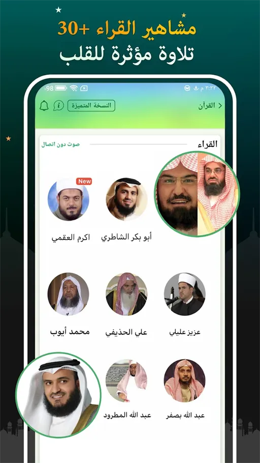 - القراء الرائعة : برنامج Quran Majeed مهكر بدون اعلانات يقدم لك أيضا عدد هائل من أشهر القراء الذين يمكنك السماع للقرآن بصوتهم, بالتالي تستطيع تحديد القارئ المفضل لك لسماع القرآن بصوته.