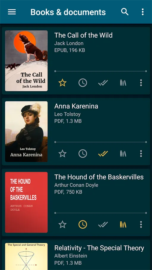 كما تتوفر في التطبيق مجموعة متنوعة من القوائم التي يمكنك الاستمتاع بها مثل القراءة لاحقا التي تُضيف بها الكتب التي تحتاج لقرائتها ولكن لاحقا بجانب وجود قائمة المقروء مسبقا الذي يتم اضافة به أي كتاب تم قرائته بنجاح وبالتالي تتمكن بواسطة تلك القوائم من تنظيم عرض الكتب في تطبيق ReadEra PDF Reader Pro مهكر لكي تستطيع معرفة الكتب المقروءة والتي لم يتم الإنتهاء من قراءتها, الجدير بالذكر أيضا أن أي كتاب تقوم بإضافة لقائمة من هذه القوائم يتم حذفه من القائمة الأخرى تلقائيا, علاوة على ذلك فـ تطبيق قراءة ملفات بي دي اف ريد ايرا مهكر يتميز بدعم العديد من الصيغ المتنوعة وبالتالي تستطيع الاستمتاع بقراءة أي مستند بدون مواجهة قيود تتعلق بالصيغة الخاصة به .