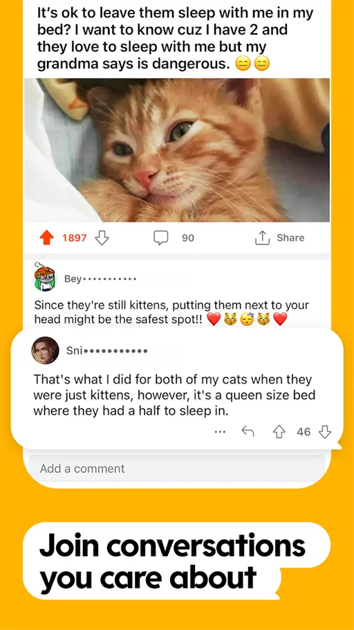 • التفاعل الإجتماعي : بعد تنزيل تطبيق Reddit مهكر تتوفر ميزة التفاعل الإجتماعي التي تستطيع بواسطتها التفاعل مع المنشورات التي تشاهدها, هذا التفاعل يتمثل في تسجيل زر التفاعل الإيجابي أو السلبي بالإضافة لإمكانية كتابة التعليقات المرادة على هذه المنشورات.