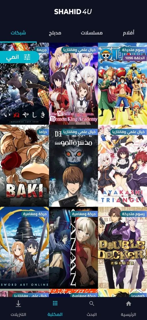 - محتوى الأنمي : إن كٌنت من محبين الأنمي والعروض اليابانية الشهيرة فـ مع تحميل برنامج شاهد فور يو Shahid4U Apk مهكر سوف تتمتع بمشاهدتها, والعروض تأتي بشكل مدبلج ومنها ما يكون مصحوب بالترجمة العربية, والتحديثات المستمرة ستضمن لك آخر العروض والحلقات للمسلسلات المستمرة في العرض.