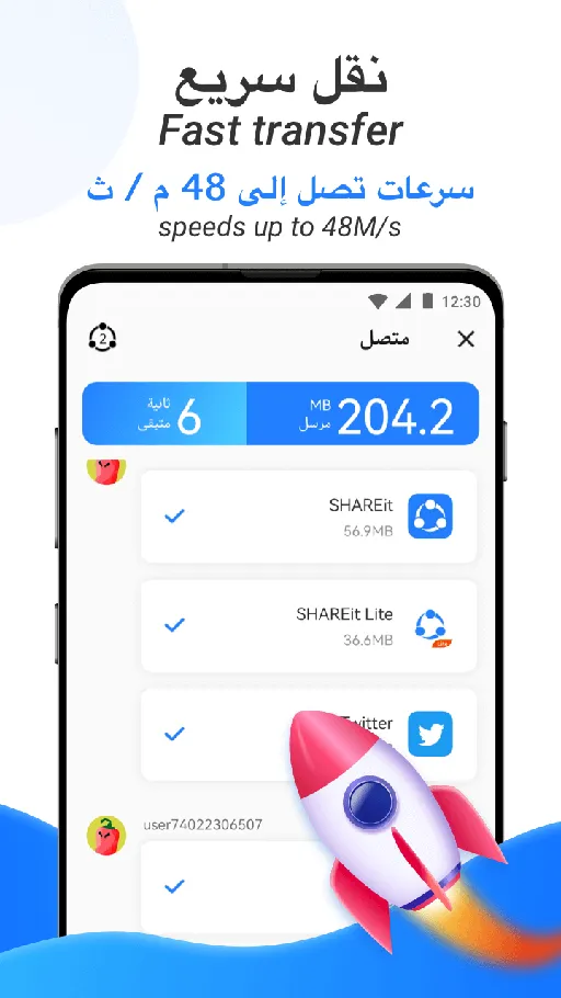 الجدير بالذكر أن تلك الطريقة أكثر أمانا لأن تطبيق Shareit Lite شير ت لايت مهكر هو الذي يتعرف على الجهاز, بمجرد الإتصال تلاحظ تقدم عملية النقل وبالتالي يمكن الإنتظار قليلا من الوقت حتى الإنتهاء من التحميل, من مزايا “تنزيل تطبيق شير ات لايت” أنه يتيح لك نقل الملفات الكبيرة الحجم بدون مشاكل ولكن لكي لا تفشل عملية النقل لابٌد التأكد من وجود مساحة تخزين مناسبة لحجم هذا الملف قبل بدء التحميل.