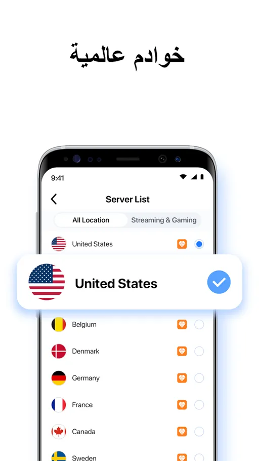 - تغيير الموقع : كما ذكرنا أن تحميل برنامج Sky VPN مهكر لاندرويد يوفر خوادم من دول عديدة حول العالم وبالتالي بنقرة واحدة تستطيع نقل الموقع الخاص بهاتفك من دولتك لأي دولة من هذه الدول المتوفر خوادم برها.