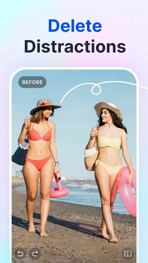 - إزالة الأشياء : يوفر “تطبيق SnapEdit Pro Apk مهكر” خاصية مهمة وهي إزالة الأشياء من الصور, في السابق كان من الصعب تنفيذ هذا الأمر ولكن مع تحميل التطبيق يمكنك تحديد الأشخاص وسوف يقوم بمسحهم من الصورة بشكل نهائي.