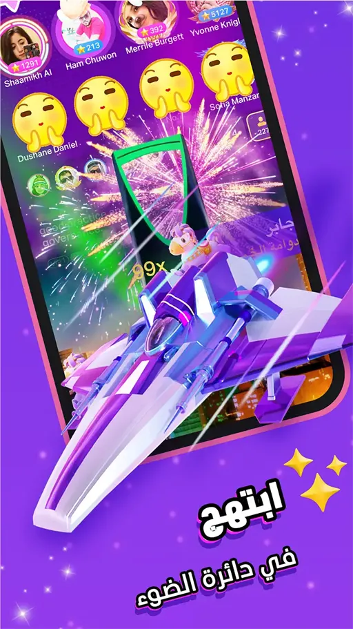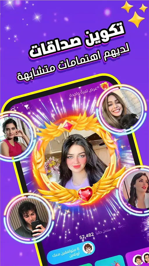 - الكوكب : أول الصفحات في الواجهة وتعتبر الأهم لأنها تعرض كافة الخصائص والخدمات الإضافية للتطبيق, من هذه الصفحة يٌمكنك الدخول إلى الغرف أو البدء في ممارسة الألعاب أو يٌمكنك البدء في البحث عن رفيق الروح حسب الإختبار الذي قمت بإجرائه مسبقاً, وهٌناك تحديات فردية تصل إليها من نفس الصفحة ومكالمات صوتية للتعرف على الأشخاص بشكل سريع ومباشر.