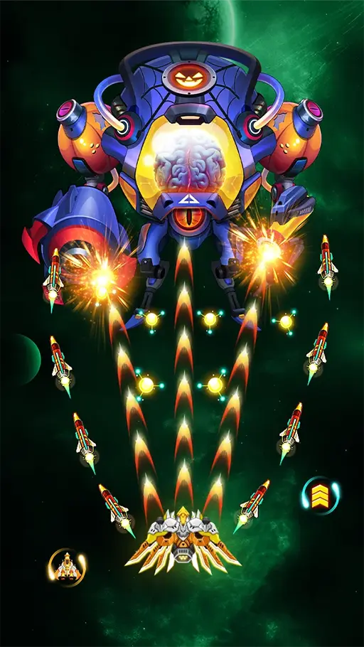 - الزعيم : علاوة على الأوضاع المتوفرة في لعبة Space Shooter Galaxy Attack مهكرة للاندرويد يتوفر وضع الزعيم الذي يُركّز المواجهة كلها في خصم واحد بالغ القوة والخطورة، مانحاً إياك فرصة استثنائية لاختبار قدراتك القتالية في أعلى مستوياتها، مع إمكانية تحديد درجة صعوبة الزعيم التي تودّ مواجهته بها.