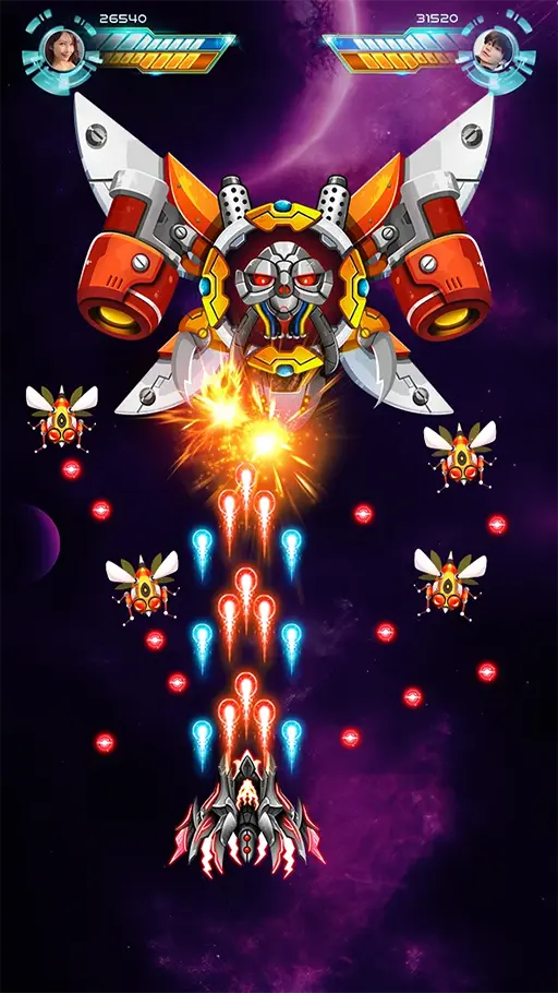 - ميزة الترقية : بعد تحميل Space Shooter Galaxy Attack Mod Apk تلحظ كيف تتحول التحديات إلى عائق حقيقي مع التقدم، لذلك يُتيح لك نظام الترقية المدمج رفع قدرات مركبتك والارتقاء بتأثيرها القتالي لتتمكن من اجتياز المستويات الأصعب بنجاح.