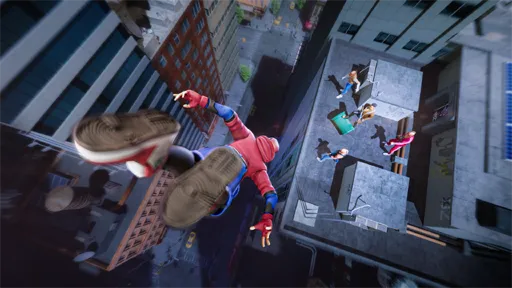 لكن من حُسن الحظ لهذه المدينة أن يوجد بها رجل خارق يملك قدرات خارقة لا توجد في أي شخص أخر وهو رجل العنكبوت الذي لديه القدرة على التسلق على والتنقل من مبنى لآخر عبر الخيوط العنكبوتية التي يقوم بصناعتها, بالإضافة إلى أنه يمتلك أيضا المهارات الخاصة بالقتال وبالتالي لا يواجه مشاكل في تنفيذ المهام المُسندة إليه, حيث يستطيع استخدام مهارة التأرجح للنزول فوق العصابة دون الشعور بك وبالتالي تسبب لهم عنصر المفاجئة وبعد النزول لهذه العصابة تقوم ببدء الإشتباك مع جميع أفراد العصابة بواسطة مهارات القتال الخاصة بك.