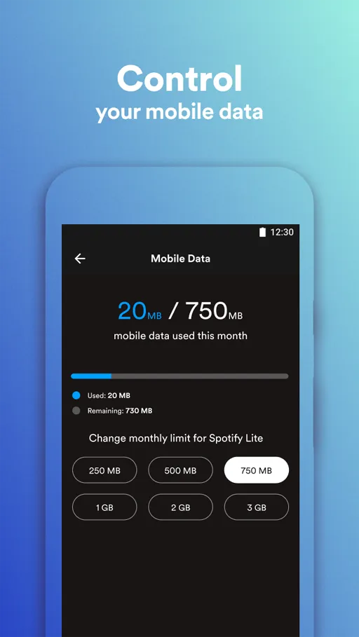 - التحكم في الاستهلاك : من أبرز المميزات التي يحتوي عليها Spotify Lite Apk هى ميزة التحكم في الإستهلاك والتي بواسطتها يمكنك تحديد حجم الإنترنت الأقصى للاستهلاك.