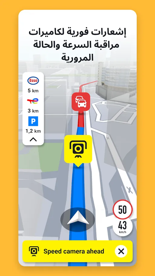 - كاميرات السرعة : عندما تكون أمامك كاميرا مراقبة السرعة يمكن للتطبيق تنبيهك قبل أن تقوم بالمرور من أمامها بسرعة أكبر من السرعة المحددة ويتم تطبيق مخالفة عليك, هذا الإخطار يمكنك الاستمتاع به صوتيا أو إطارا أو صوتا و إخطارا معا.