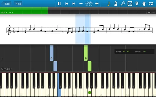 كما تتوفر مرحلة أخرى تخضع للتدريب على اللحن والتي يمكنك بواسطتها خوض التدريب على اليد اليمنى بالإضافة لتدريب أخر على اليسرى كما يمكنك أيضا خوض التدرب على كلتا اليدين معا, كل تدريب من هذه التدريبات الثلاثة يتم إظهار لك بها التقييم الخاص بها, تتوفر أيضا مرحلة أخرى خاصة بممارسة الإيقاع والتي تكون بسرعة ثابتة أيضا هذه المرحلة تنقسم لثلاث تدريبات وهم اليد اليمنى واليد اليسرى واليدين معاً, كما تأتي المرحلة الأخيرة من التعلم وهى العزف على أحد الأغاني التي يتم تحديدها بالتطبيق وأيضا يتم العزف ثلاث مراد مثل باقي المراحل الأخرى.