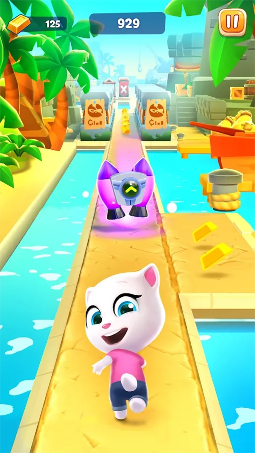 لعبة ( ) من سلسلة ألعاب ( Talking Tom ) الشهيرة وتتميز لعبة Talking Tom Gold Run 2 مهكرة اخر اصدار بأنها توفر نوعاً من الإثارة في اللعب وذلك لأنها تُعد من ألعاب المطاردة التي يقوم فيها القط بمطاردة اللص الذي سرق الذهب, لكن أثناء عملية المطاردة تواجه العديد من التحديات والعوائق التي تظهر أمامك على الطريق الذي تقوم بالمطاردة به, وتلك العقبات تشعر من خلالها بالإثار وذلك لأنك تحتاج لتخطيها دون أن تصطدم وتخسر, يجب العلم أن هٌناك أساليب متنوعة في تخطي تلك العقبات مثل : القفز نحو الأعلى بالإضافة للتزحلق من الأسفل وذلك في حالة ظهور العائق الذي يحتوي به من الأسفل على جزء صغير يمكن العبور من خلاله ولا تستطيع القفز من أعلاه.