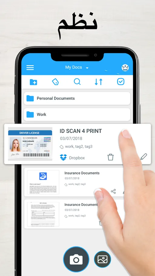 • معرف المسح : تطبيق Tap Scanner مهكر اخر اصدار يمتلك أيضا ميزة معرف المسح التي تجعلك تتمكن من مسح البطاقة الشخصية أو جواز السفر الخاص بك, وبالتالي تتمكن من إضافة هذه الصور التي تقوم بمسحها للمستندات الخاصة بك بكل إحترافية.