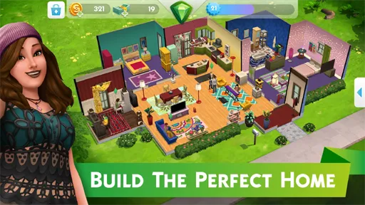 من المزايا التي تعمل على جذب انتباهك للعبة بصورة كبيرة هي خوض تجربة بناء منزلك بالتالي تستطيع تصميم الديكور الخاص بالمنزل الذي تعيش فيه بالصورة المناسبة لك وذلك من خلال شراء الديكورات والعمل على تحديد الألوان الخاصة بها بالإضافة لتحديد المكان المراد وضع به الديكورات داخل المنزل في تصميم شخصيات Sims Mobile مهكرة.