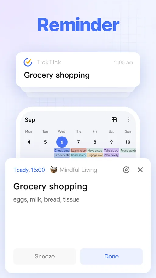 أيضاً يقدم تطبيق TickTick مهكر للاندرويد مجموعة من الخدمات الإضافية المٌخصصة لتحسين إدارة الوقت وتنظيم الحياة اليومية مثل إعداد تنبيهات مُتكررة على مدار اليوم, أو إنشاء القوائم مع تمييزها بالألوان أو تعيين تواريخ لتنفيذ شئ مٌعين, وبجانب ذلك يدعم التطبيق ميزة التقويم التفاعلي وهي ميزة تُتيح عرض المهام بتنسيق واضح لتسهيل التخطيط طويل الأمد.