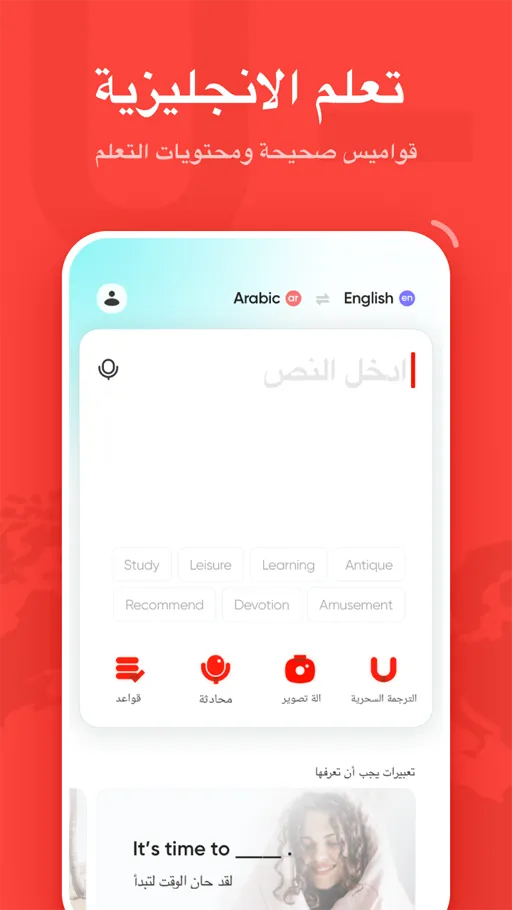 - اللغة العربية : من مميزات تطبيق قاموس يو دكشنري U Dictionary مهكر أنه يوفر خدمة الترجمة للعديد من اللغات ومن أبرز تلك اللغات تتوفر ترجمة للغة العربية, وبالتالي يمكن للمستخدم ترجمة أي لغة للغة العربية والعكس صحيح.