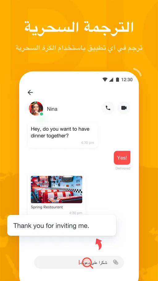 - الترجمة السحرية : من أبرز المميزات المتوفرة بعد تحميل U Dictionary مهكر هى ميزة الترجمة السحرية التي تستطيع من خلالها بمجرد وضع أداة الترجمة فوق اي كلمة تلاحظ ترجمتها بصورة فورية وبالتالي يمكن استخدام هذه الأداة في الدردشة.