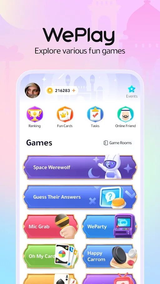 الألعاب والغرف الصوتية في لعبة دردشه وتعارف وي بلاي مهكرة We Play Game