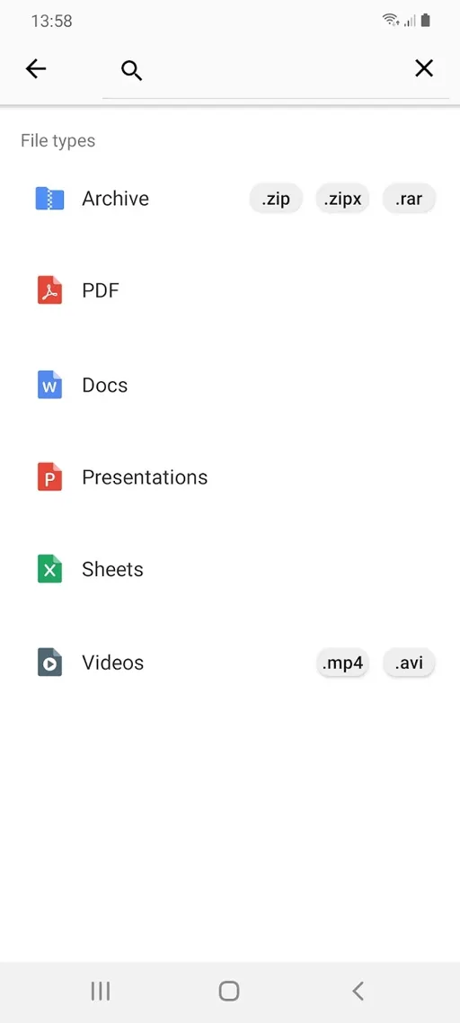 يوفر تحميل التطبيق محرك بحث مميز وعالي الدقة تتمكن من خلاله في العثور على الملفات التي تريدها بشكل أفضل واسرع دون الحاجة للقيام بالعديد من الخطوات, حيث أنك بمجرد إدخال إسم الملف في هذا الشريط الخاص بالبحث تلاحظ ظهور أمامك جميع النتائج المتعلقة بهذا البحث, بالتالي إذا كنت لا تعلم مكان المجلد الذي يوجد فيه الملف المراد الاستمتاع به عليك الاستعانة بهذا المحرك في التطبيق, كما يمكن تحديد نوع الملفات المراد البحث فيه مثل : ملفات البي دي إف والمؤرشفة وغير ذلك لكي تكون عملية البحث لك أسهل بكثير.