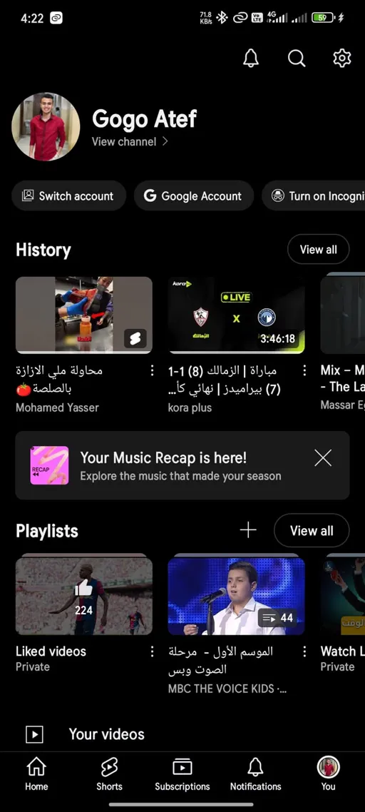 - المكتبة Library : وأخيراً صفحة المكتبة أو مساحتك الشخصية في يوتيوب بريميوم اخر تحديث, المكتبة من أهم الصفحات وتتمتع بخصائص رائعة للغاية, فـ نبدأ بأول وأهم خاصية وهي عرض الفيديوهات التي قٌمت بتحميلها وثاني خاصية هي عرض السجل لمتابعة مشاهدة المقاطع من لحظة توقفك, وهٌناك خيار لعرض الفيديوهات التي قٌمت بإعطائها إعجاب أو لايك وخيار آخر لفديوهات صفحة المشاهدة لاحقاً.