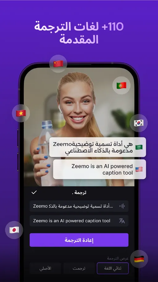 علاوة على تلك المزايا تتوفر ميزة الترجمة التي تستخدمها لترجمة التسميات التي تظهر بالفيديو, بالتالي يمكنك جعل الفيديو الواحد تظهر به أكثر من تسمية, قبل بدء التعديل على الفيديو في تطبيق زيمو مهكر Zeemo Mod Apk تقوم بتحديد اللغة الخاصة بالتسمية بالإضافة لإمكانية تحديد اللغة الخاصة بالترجمة.